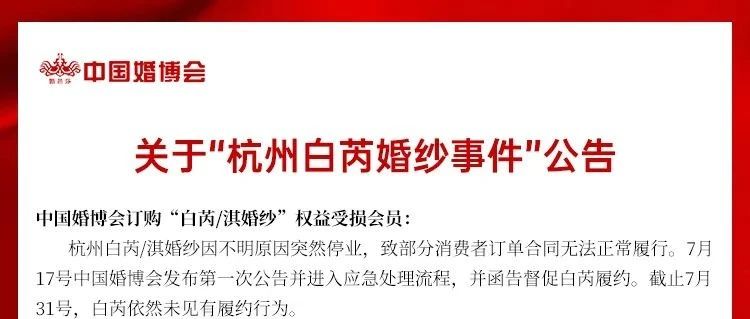 再次公告!“杭州白芮婚纱事件”解决方案